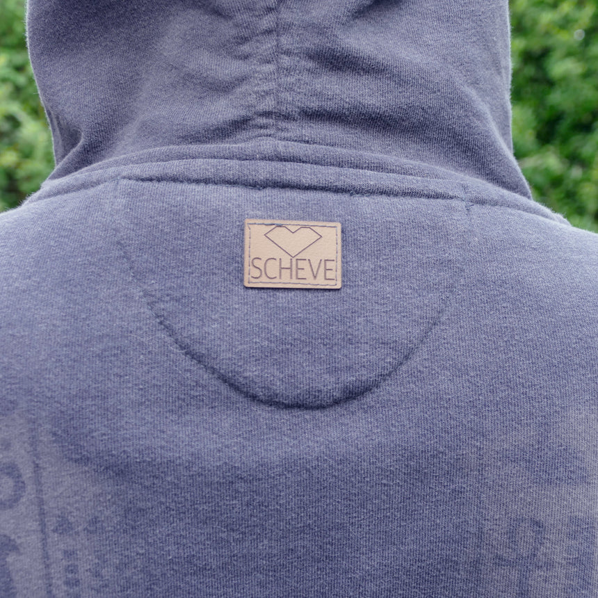 Christian hat sich bei mir einen Hanfhoodie bestellt. Naja, der Stoff besteht nicht gänzlich aus Hanf. 55 % aus Hanf und 45 % aus Bio-Baumwolle. Trotzdem ein sehr robuster und schöner Stoff! Jedenfalls gab er mir keine bestimmte Vorgabe, ich solle mich einfach mal austoben. Nur bunt wollte er nicht.„Möglichst grau oder schwarz“ sagte er. Oh je. Zu der Zeit experimentierte ich mit pflanzlicher Tinte. Nach einer Anleitung im Internet habe ich eine interessante Farbe mit Galläpfeln +Eisensulfat erzielt. Nicht ganz schwarz, kam dem aber schon nahe. Der Gallapfel ist eine rundliche Verformung, die an der Unterseite verschiedener Blätter zu finden ist.