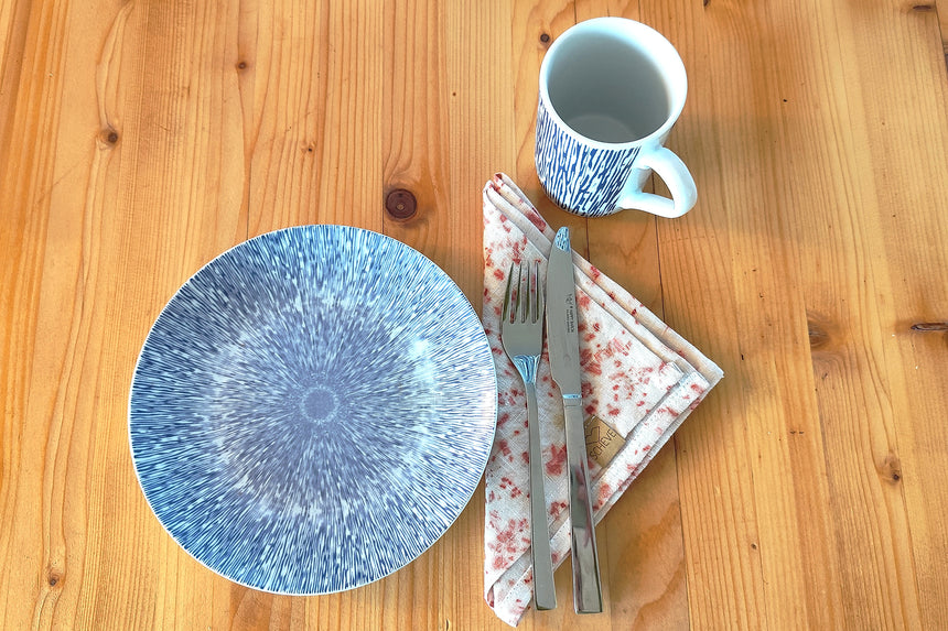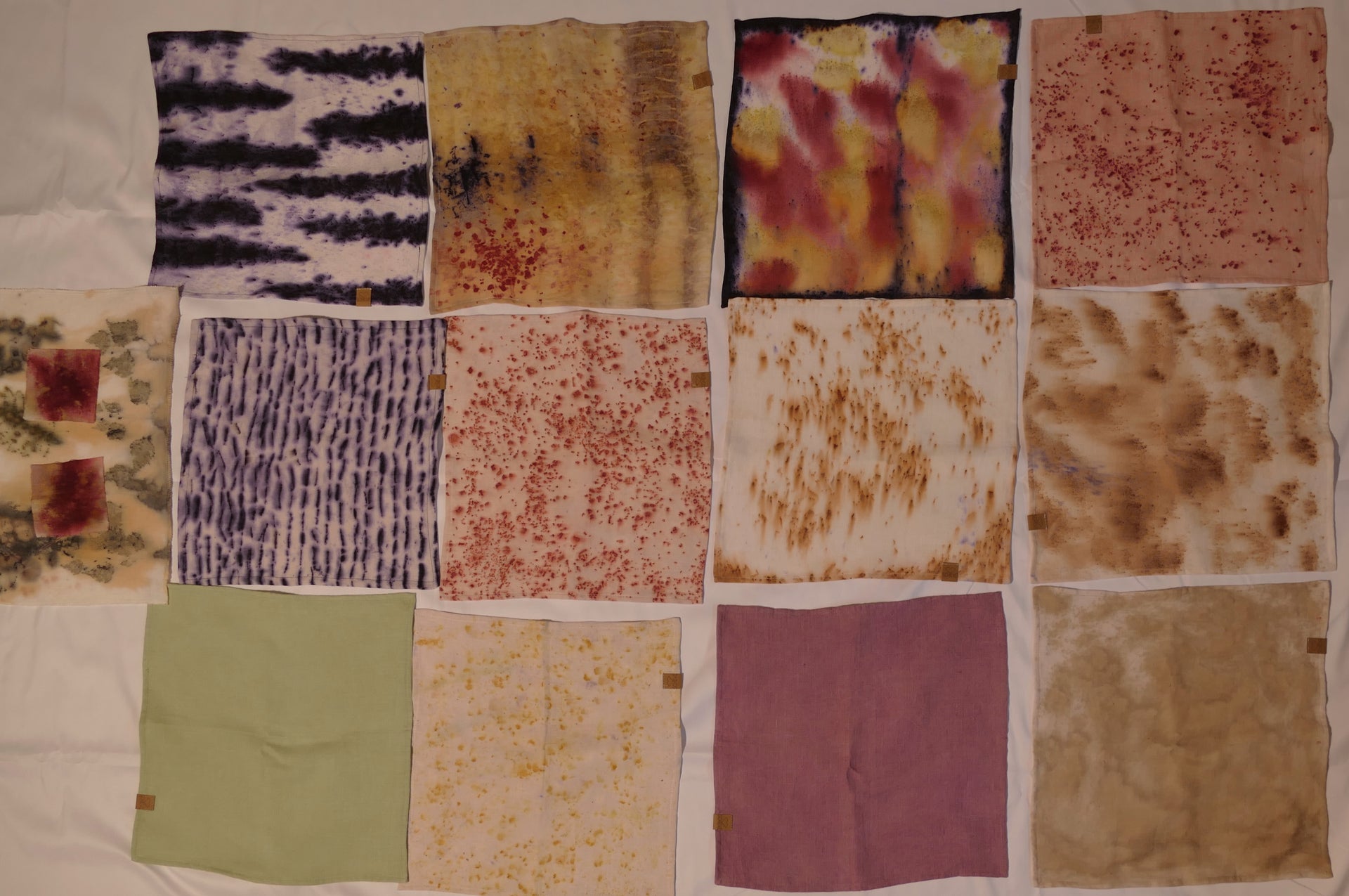 Allerdings ist es irgendwie nicht ganz verhältnismäßig, für ein oder zwei Mal Mund abwischen einen so großen Aufwand für die Herstellung von Papierservietten zu betreiben. So meinte sie, sie hätte wahrscheinlich ein besseres Gewissen, wenn sie Stoffservietten hat, die sie waschen und somit wiederverwenden kann. Einige Wochen vor Leonies Geburtstag erinnerte sich meine Mama an diese Situation und meinte zu mir: „Lass uns Leinenservietten mit Pflanzenfärbung für Leonie machen.“ Also überlegten wir uns: Menge, Größe, Design. Wir haben ein Paar mit Blauholz, ein Paar mit Krappwurzel und ein Paar mit wilder Mischung hergestellt.